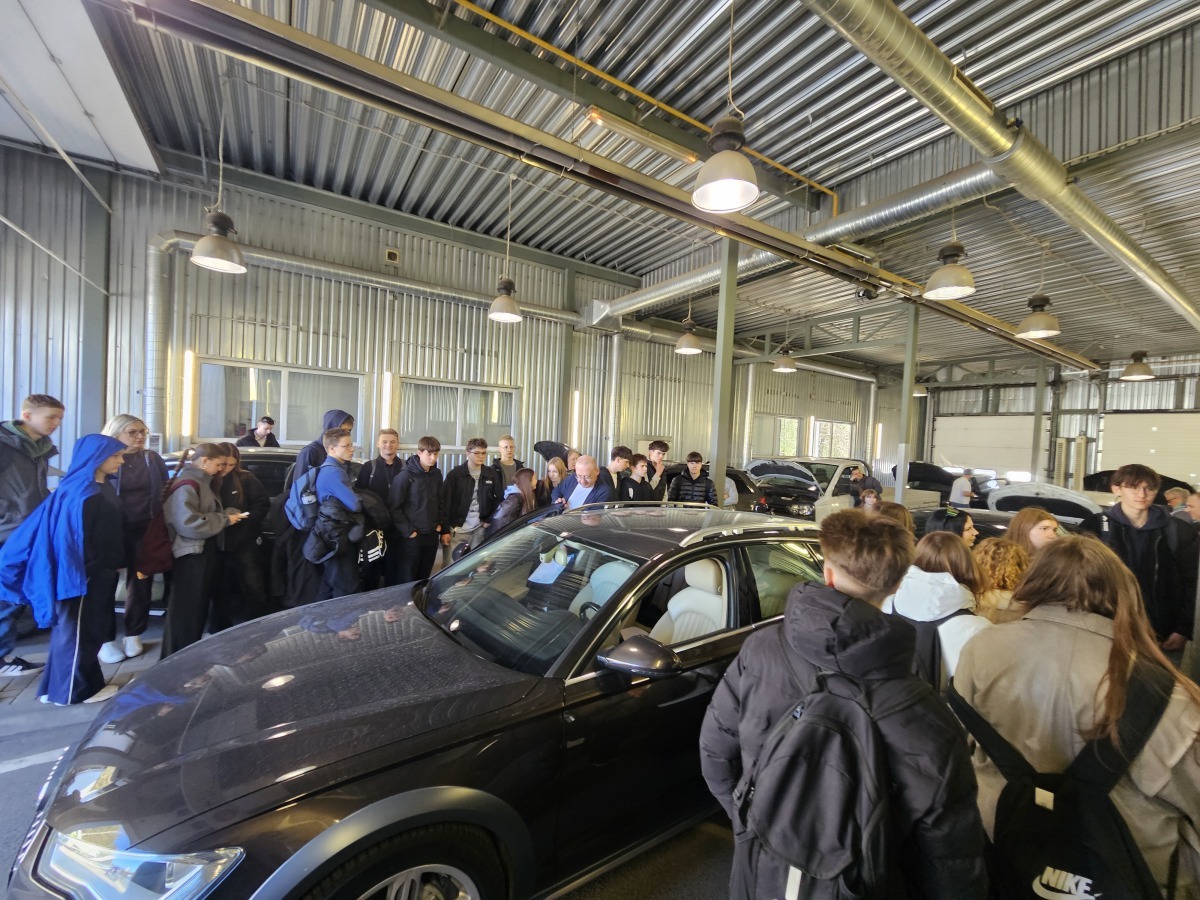 Vizito metu gimnazistai susipažino su transporto priemonių techninės būklės tikrinimo eiga bei sužinojo vairuotojo pažymėjimų išdavimo ir transporto registravimo taisykles.