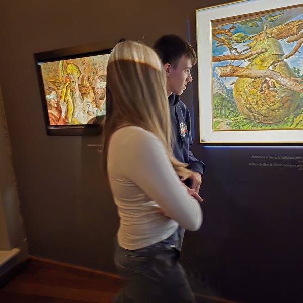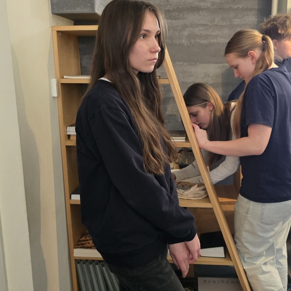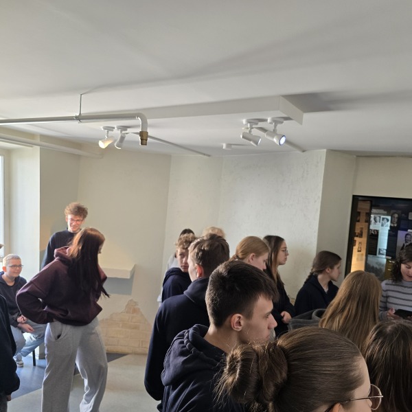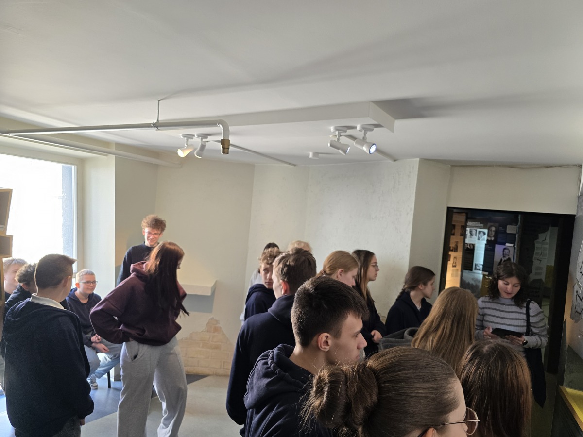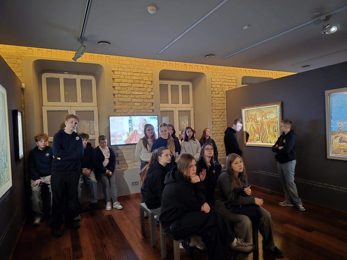 Mūsų gimnazijos 8b klasės mokiniai su lietuvių kalbos mokytojomis Loreta Skulskyte ir Milda Kazakevičiene, ruošdamiesi skaityti Anos Frank „Dienoraštį“, lankėsi Samuelio Bako muziejuje.