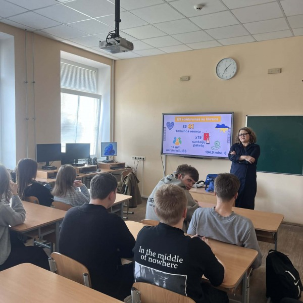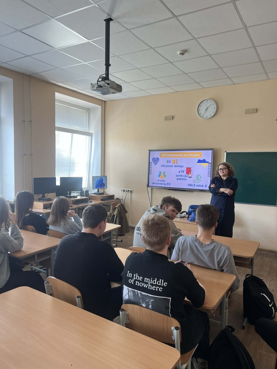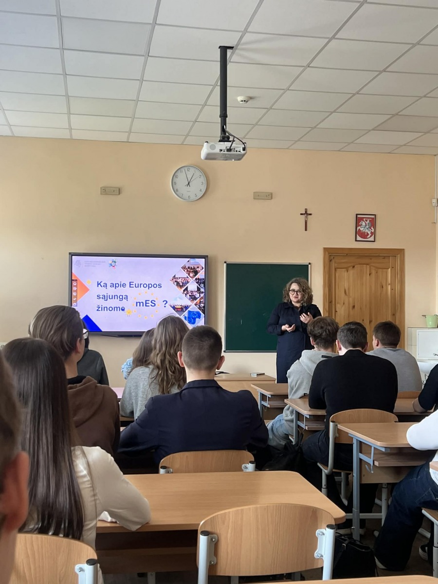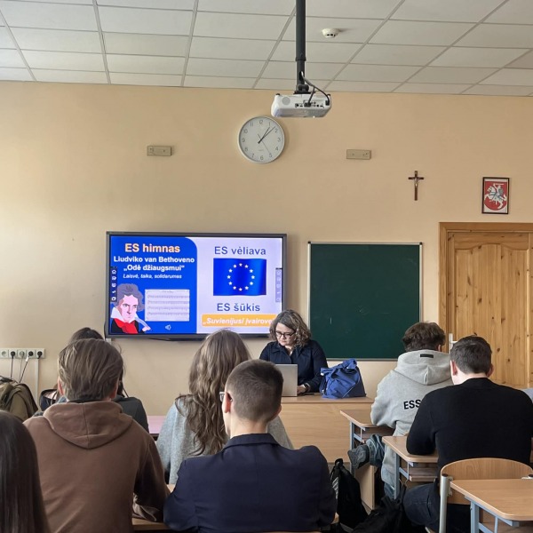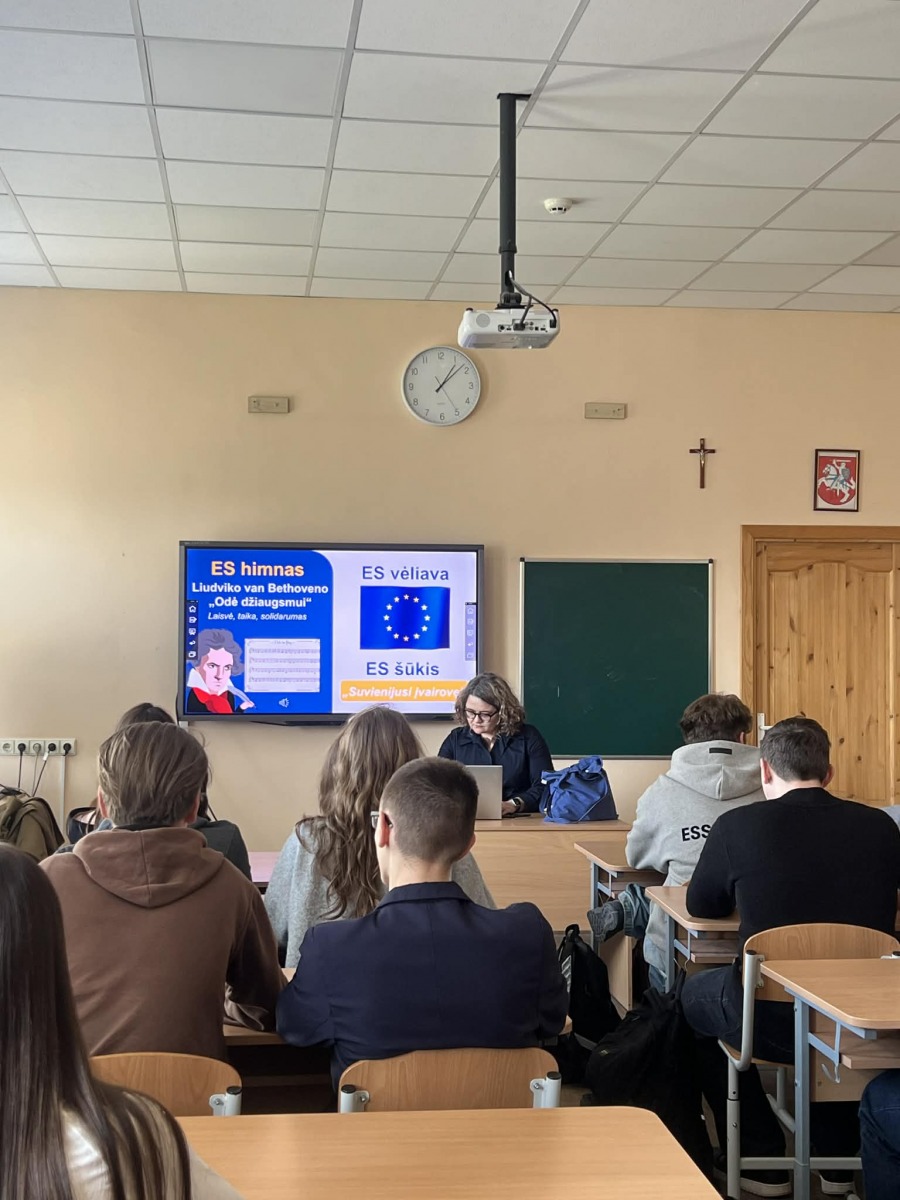 Podczas spotkania uczniowie mieli okazję poszerzyć swoją wiedzę na temat Unii Europejskiej, jej wartości, znaczenia dla Litwy oraz wpływu na codzienne życie. Była to cenna i inspirująca lekcja, która skłoniła młodzież do refleksji nad ważnymi sprawami współczesnego świata.